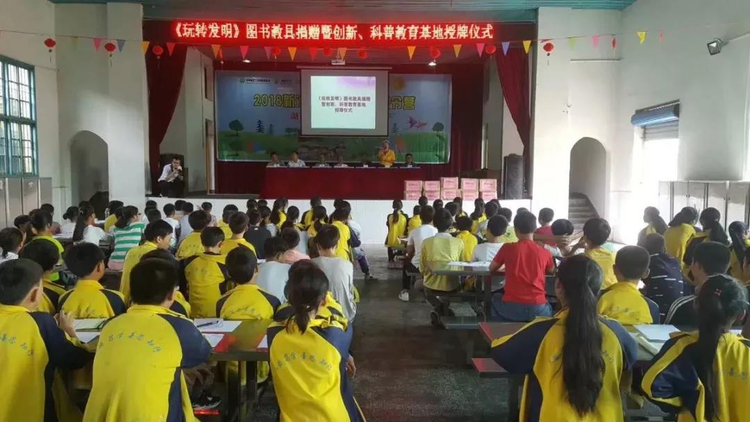 9月19日下午,深圳市奇思妙想教育科技有限公司(以下稱 奇思妙想)聯合湖南省微點公益服務中心、郴州市志愿者工作站,向湖南省懷化市橫江橋中學捐贈了880份《玩轉發明》的圖書、教具,并舉行了創新教育基地授牌儀式。