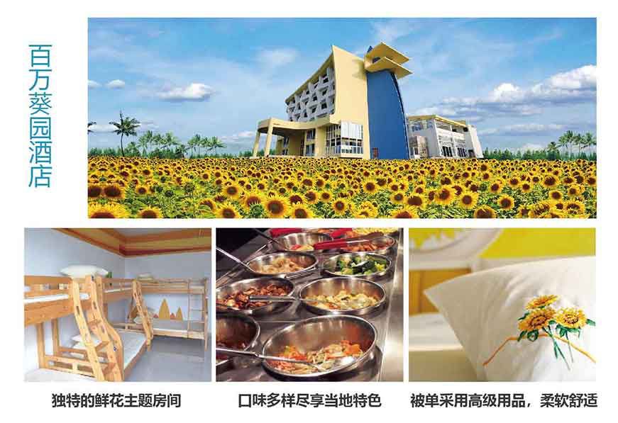 入住百萬鮮花叢中的酒店,每一層都有獨特的鮮花主題,紫色安神薰衣草房、粉色唯美櫻花房、紅色浪漫玫瑰房、陽光燦爛向日葵房、橙色活力郁金香房,還有一層是以吉祥物為代表的葵花貓動漫房。